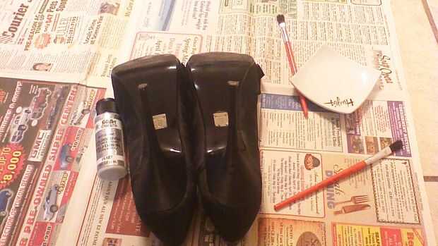 • Asegúrese de que cubrir cada parte del zapato que no cubrió en brillo con algún tipo de cinta; Usé cinta scotch porque eso es lo que tenía y no dañe mi zapato, pero cinta adhesiva probablemente trabajaría mejor.