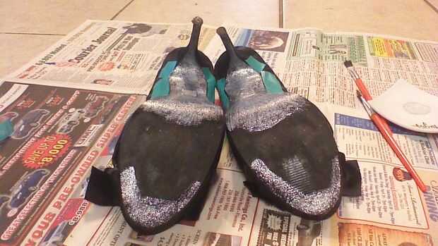 Si está utilizando pegamento y brillo, cubrir la parte inferior de su zapato muy bien con pegamento. Si utilizas un pegamento líquido, un pincel le ayudará a obtener una capa uniforme; Alternativamente, un pegamento stick wil trabajo mientras que asegurarse de que no hay ningún grumos de pegamento. Luego, cubra la parte encolada con brillo y golpear el zapato contra el borde de su área de trabajo para desprender exceso brillo.