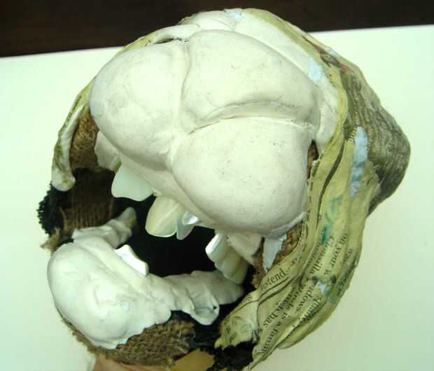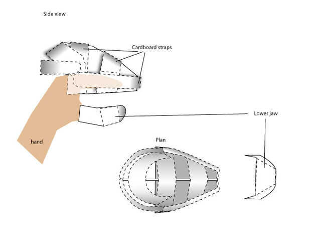 Forma y corte en trozos para la estructura del cráneo y cartón. Pistola de pegamento caliente de uso para asegurar su lugar (la pistola de pegamento caliente se utilizará asignar en este proyecto)