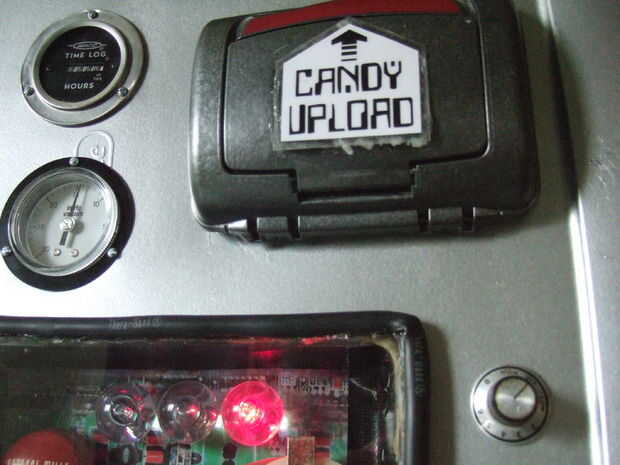 El caramelo es una idea que obtuve de traje de otra persona. Es muy inteligente. Tengo un pequeño envase de toallitas de bebé, con una ficha empuje y una aleta en la parte superior aparece abierto. La cubierta todo es un poco más grande que la base. Recortado a lo largo del borde de la tapa para que los bordes eran rectos, cortar la parte interior debajo de la aleta para hacer una abertura más grande y cortar la parte inferior aproximadamente una pulgada debajo de donde la tapa se fija a él. Nos aerosol pinta la caja con la pintura más oscura y la ficha (tecla) rojo. Hice una bolsa que encajaría en la circunferencia de la parte inferior de la caja abierta, con Velcro para fijar. Cuando se hace, que cuelgue hacia abajo dentro del traje para recibir dulces. Cortamos un agujero en el cuerpo para encajar perfectamente la caja siendo empujado hacia adentro para que la tapa de tope hasta el exterior del cuerpo. El cuadro fue colocado en el agujero para que el botón fue hacia arriba y pegado a lo largo de la costura desde el interior del cuerpo. Imprimí, laminado y al signo de la aleta que tiene una flecha apuntando hacia arriba y las palabras 'Dulces de subir'.