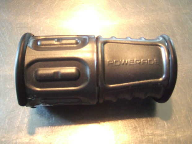 Para los brazos, tomé las etiquetas de Gatorade cuatro y dos botellas de Powerade (tamaño individual). Cortar tapas y fondos de cada uno para los cilindros de centro. Las piezas del antebrazo son un cilindro Gatorade y Powerade encajadas entre sí y pegado. Se ha añadido un eje de rueda de cochecito de bebé a un extremo, pegado piso. y que se extiende hacia fuera un poco. La banda de la parte superior del brazo es un monocilíndrico de Gatorade. Reunidos cuatro todas las piezas fueron pintadas con la pintura plata más oscuro y los bordes exteriores fueron alineados con la tubería quirúrgica. He hecho piezas de pierna de la misma manera, pero mi hijo no es usarlos en las fotos.