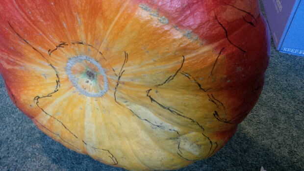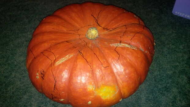 Así que encontré una calabaza de Cenicienta tamaño de un gato y dibujó en él con un rotulador.