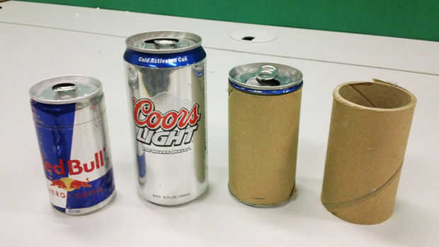 1. Primero corta una lata de red bull y adjunta la etiqueta. Esto funcionó bien, pero no tengo ninguna más latas, y no quiero comprar un toro rojo solo para usar el. He encontrado en el reciclaje en la escuela.
