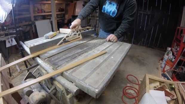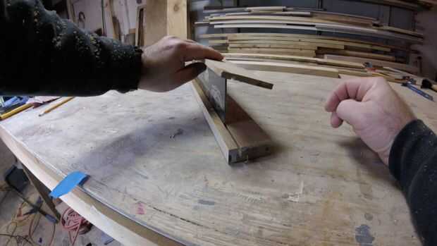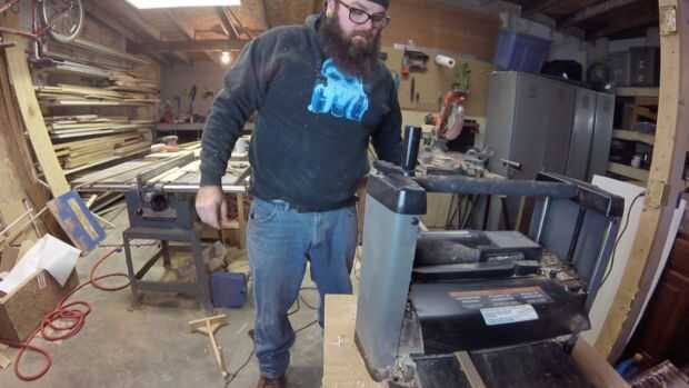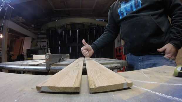 Usé 2-2.5" x.75" suelo de roble. Rodajas de 1 en dos mitades iguales. Las piezas delgadas se utilizará para las piezas de la tapa y la parte posterior. Arrancó una pieza abajo en 3 secciones sin igual (para los tableros de piso poco) y ellos planean hasta ti diferentes espesores (1/4" 5/16" y 3/8"). Esto le dará a la planta una fruta al azar, vieja sensación de tapa de sótano.