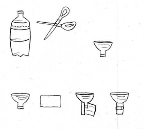 1. cortar la parte superior de la botella de plástico grande