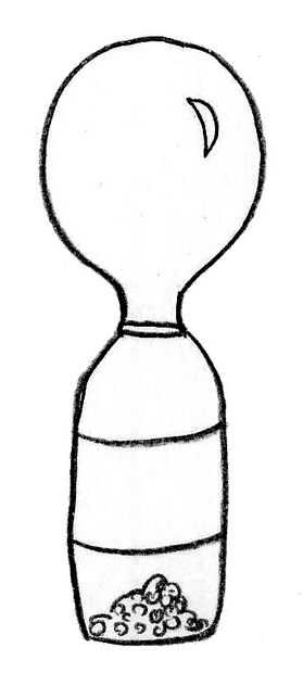 Volar un globo un poco y estirar el cuello (el bit que sopló en) sobre la parte superior de la botella pequeña. Tienes que hacer esto sin que el exceso de aire en el globo. Esto puede ser difícil de hacer. Una forma fácil es torcer el cuello del globo unas 3 veces después de que ha volado. Esto debe mantener el aire mientras pones el globo en la botella.