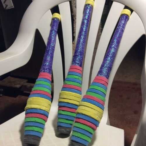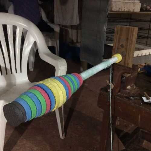 Como se puede ver, las manijas son cónicos. Esto se hace mediante bobina de tejido de hilo y silicón de goma alrededor del tubo central. Mediante la adición de más capas donde el mango de hilo acerca del cuerpo de espuma aumenta el diámetro. Aplique silicona en el mango, difundirlo alrededor un poco con el cuchillo de paleta de pintor y luego enrolla el hilo. La última capa es una capa delgada de silicona con brillo mezclado en él, que centellea bajo el sol.