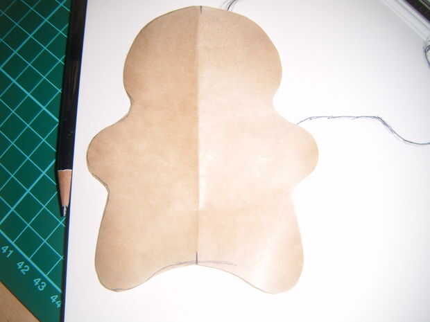 Después el dibujo trazó la profered mitad del conejo a prueba de grasa y doblarlo para que ejecute el doblez abajo del centro longitudinal del conejo cortado con la forma del conejo una vez doblada hacia fuera una tenía una forma de conejo de descripción,