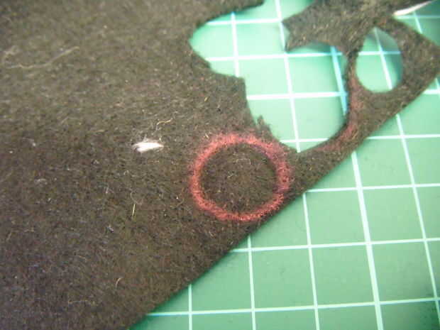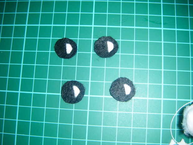Dibujaba redondo el ojo plantilla sobre el fieltro y cortar, luego corte el pedacito más pequeño de fieltro blanco en forma de media luna para crear el brillo en los ojos,