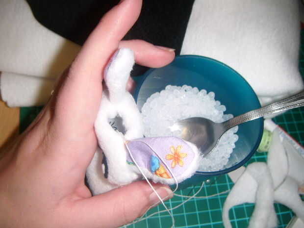El primer conejo que hice tenía un enorme agujero en su cabeza así que sólo usé una cuchara sacar las pelotillas en el conejo,