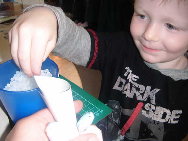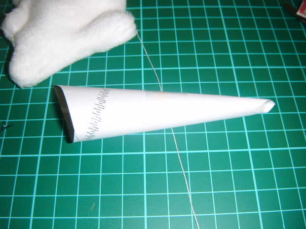 También para hacerlo más fácil para él ayuda para que hice un cono de papel de desecho darle un agujero más grande para apuntar para.
