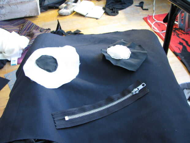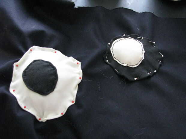 Ya que iba a tener una cara cosí mi ojos en antes de coser mis dos rectángulos juntos a lo largo de la base. Hay no hay fotos del rectángulo está cosiendo, que debo haberme quedado en un trance de máquina.