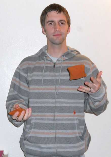 Nota: ambos objetos necesitan ser lanzado hacia arriba a nivel de los ojos. No "pasa" el segundo sorteo horizontalmente a otra parte. Este paso tendrá repetición práctica hasta dominar. Una vez que se domina este paso, cambiar las manos para comenzar primero con la mano izquierda.