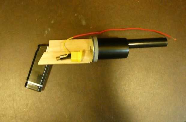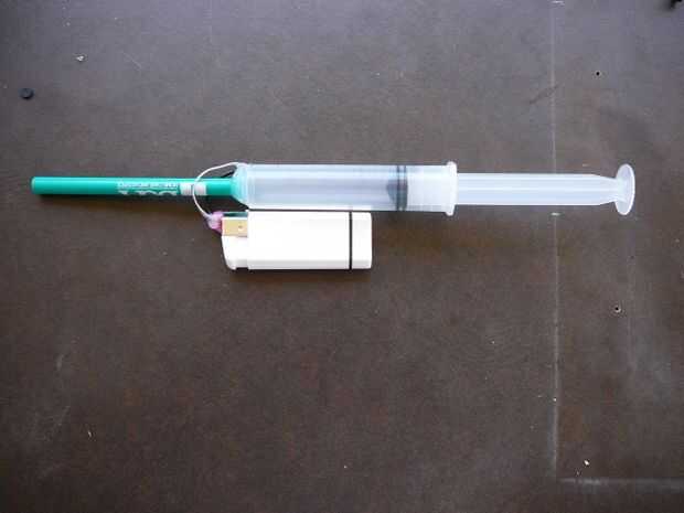 Pensé que "carga" sería mejor que tener que rociar combustible en el depósito y adjuntarlo. Me pareció que la relación de aire-combustible probablemente demasiado rica, no demasiado ligera en el cañón pirata pero planeado en hacer un pequeño agujero en el cartucho de película para aliviar la presión y deje que el combustible fluya en si eran de hecho demasiado ligera.