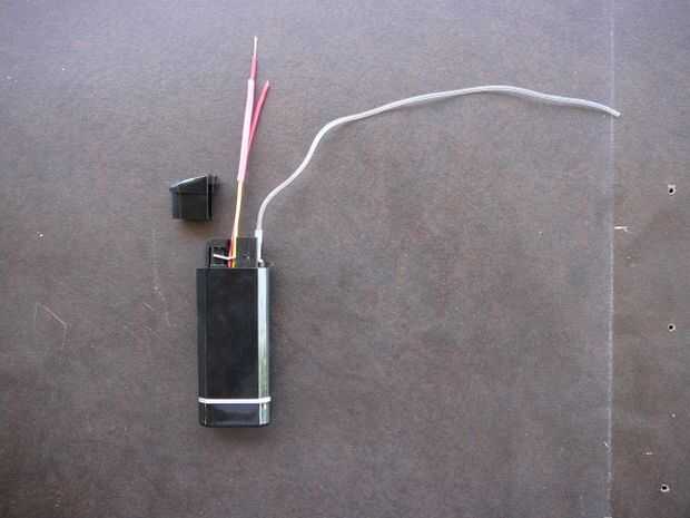 En primer lugar si no tienes el tubo, se puede sustituir por quitar un trozo de aislante de un cable y el uso de este aislamiento como el tubo. He hecho esto con un palillo de dientes para flare por el extremo del tubo, por lo que encajaría en la salida de gas de latón en el encendedor (ver fotos).