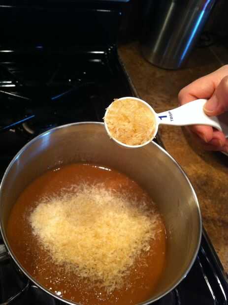 5) Añadir 5 cucharadas de Agar Agar en la mezcla (1 cucharada por cada taza de líquido que está espesando).