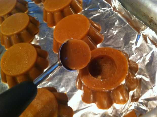 11) sacar una depresión en el centro de cada uno para actuar como un nicho para el glaseado de maple/bourbon