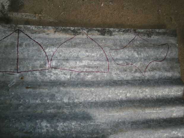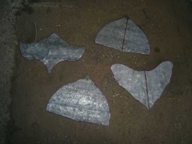 Transferir los diseños sobre el metal mediante las plantillas. Las plantillas que hice fueron las mitades y si hizo lo mismo, simplemente darles la vuelta y conéctelos trazando. Hacer esto para todas las piezas, haciendo que la parte superior las placas varias veces. Recomiendo cuatro piezas de las placas de la parte superior.