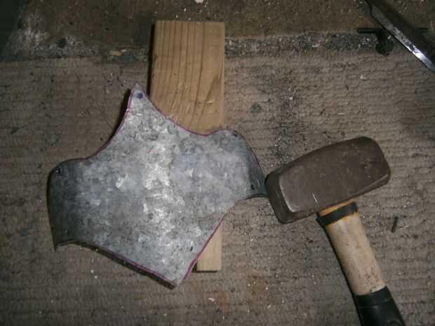 Poner las piezas en capas, hacer las marcas donde hay que taladrar los agujeros. Eficaz si se utiliza la placa de frente como un marcador improvisado para los agujeros. Taladrar los puntos marcados (si tienes problemas que puedes mirar minas y ver cómo he marcado mis puntos de taladro). Si todo se perfora hacia fuera necesita curvar las piezas a su cara. He utilizado un bloque de madera y un martillo como un juego improvisado para doblar el metal o puede usar pinzas o fuerza bruta para acelerar las cosas para arriba. Trabajar en la cara primero antes de intentar trabajar en el 'shell' de las placas de la parte superior.