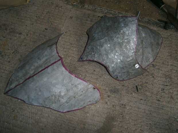 ¿Sabes los agujeros que ha perforado hacia fuera? Ahora es el momento de hacer uso de ellos. Ya sea con remaches o tuercas y tornillos, fije las piezas juntos. Es bastante recta hacia adelante voy a explicar la 'cáscara' del casco.