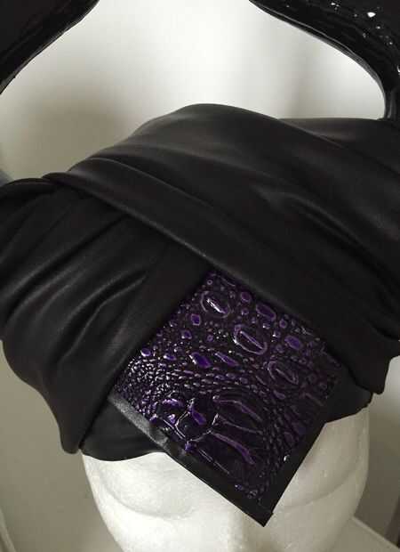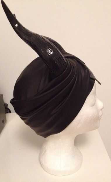 Utiliza una longitud de falso elástico (caucho casi como) cuero tela, que tapandose "turban-como" alrededor de la tapa y los cuernos, asegurándose la completa grabación (feo) fue cubierto. No tengo fotos de cómo me tapandose, porque es difícil de hacer las cosas bien, sin tener que parar para tomar fotos! ;) Entonces pensé mucho sobre cómo proteger la tela sin tener que coser en su lugar, ya habría destruido la mirada! Finalmente se establecieron para mi pistola de pegamento caliente confianza y pega todo en su lugar después de quedó satisfecho con el ajuste!
