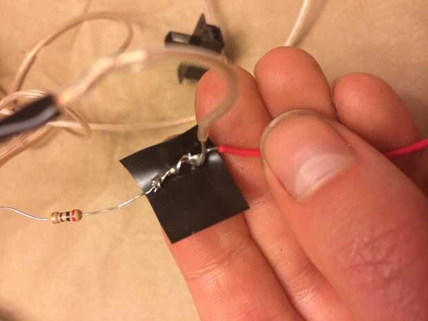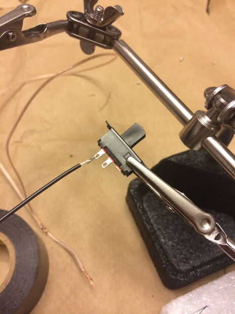 Para los ojos de LED, soldado todos los cables juntos pero si no tienes un soldador puedes torcer lo cables juntos (tanto como sea posible!) y cubrir de cinta aislante. Soldadura lo ayudará a mantenerse (además de que es bastante divertido!)