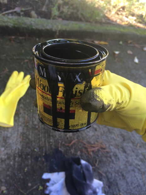 Utilicé madera mancha para el personal del tinte negro. No olvide el uso de guantes de protección, madera manchan no es divertido para fregar de la piel! Sólo utiliza el trapo para limpiar en, dejar secar durante unos 15 minutos y luego quitar el exceso. Hice dos capas.