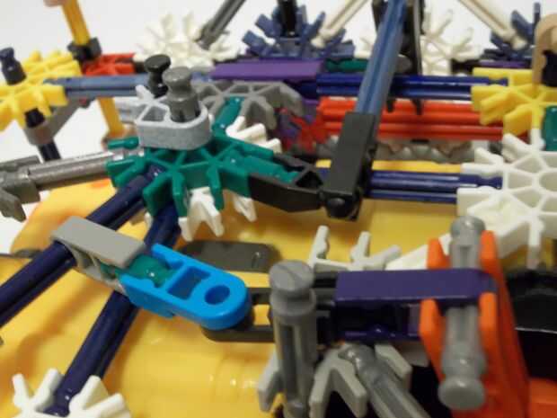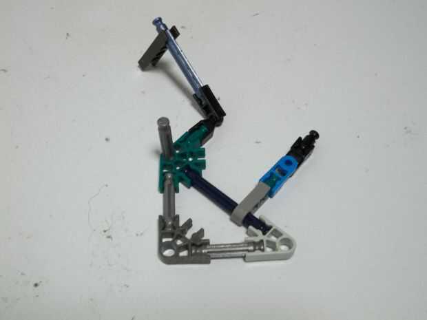 Ahora la parte seria de la mech! Esta es la principal la parte que va desde la manija de la maleta a la pistola. Durante el montaje, asegúrese de que el conjunto está por encima de la barra blanca en la sección. También asegúrese de que el conector gris es hacia el centro de la barra azul para un gatillo más sensible. El conector naranja color negro en la parte superior no está conectado a nada pero se recomienda para colocarlo como se muestra.