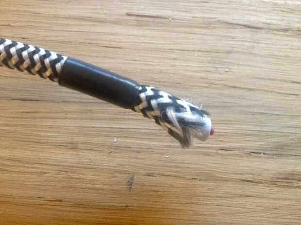 Tira trasera suficiente cable en ambos extremos para encajar cómodamente en el enchufe. Tuve que volver después de la foto y rehacerlo.