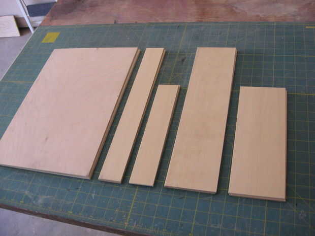 Las dos piezas laterales grandes son 11" por 16". Los pedazos más pequeños de lado para cada mitad del caso fueron 4" y 2" de ancho, respectivamente y fueron cortados a la longitud para adaptarse según sea necesario.