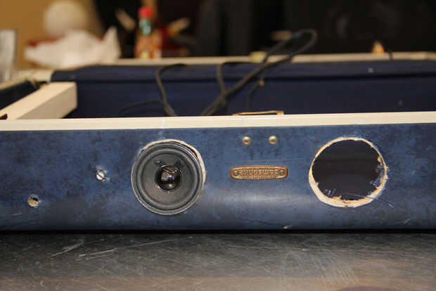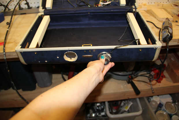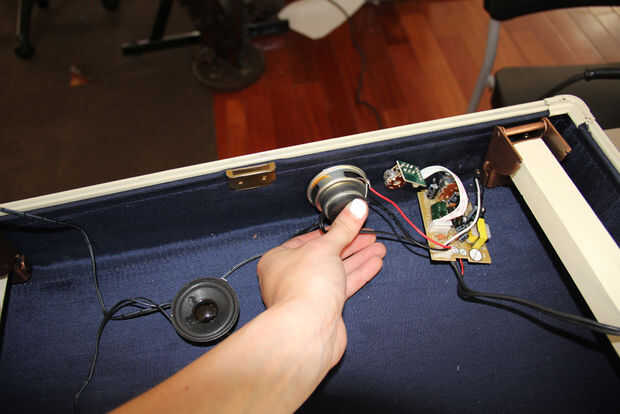 Yo sabía que quería montar los altavoces en el lado de la maleta porque yo quería que ser visible, pero no quería poner en la parte superior porque la gente sería comer de él. ¡ Me encanta cómo los altavoces y botones/interruptores de los altavoces se ven en el exterior!