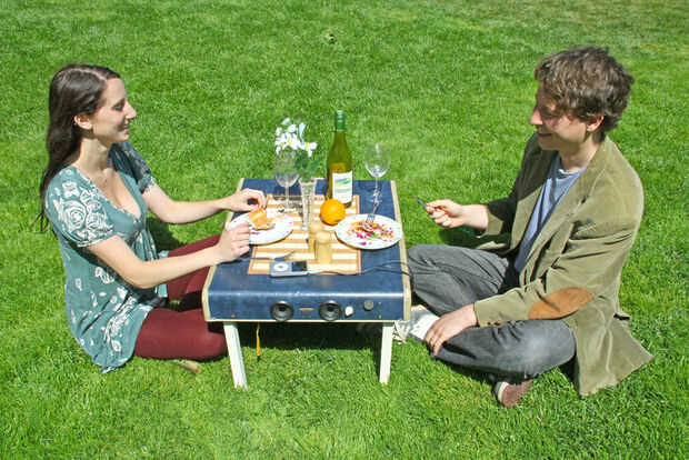 aquí es nuestro reclamado madera plana paquete de Picnic mesa con plantador (sé. Es un bocado). Hay un canal que corre por el centro por debajo de la superficie de la mesa que puede ser llenado con hielo poner sus cervezas en un día caluroso, o par