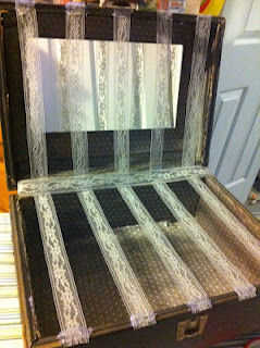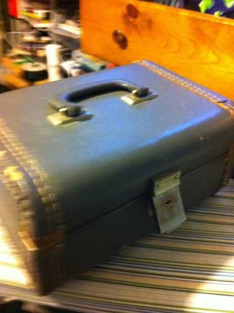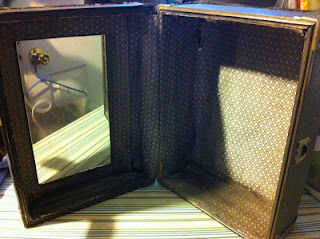 cómo tomé una maleta vintage thrift store y convertido en una vitrina de frío para merch por reemplazar el viejo revestimiento y limpiar el exterior.Plazo de:Aproximadamente cinco horas en total, tomar mi tiempo.Fuentes:Tela (una yarda a lo más)Mater