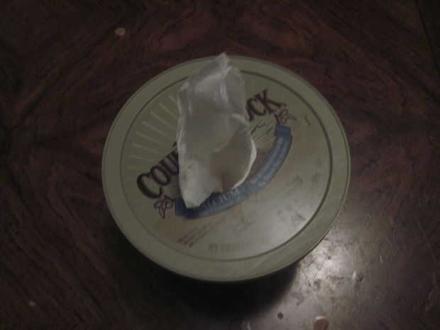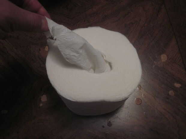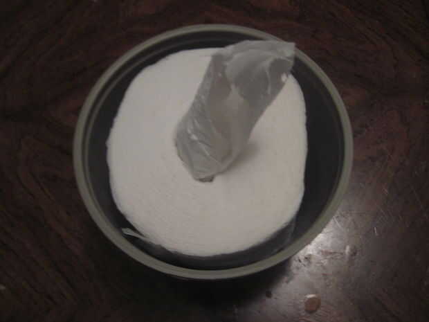 Coloque la tapa en el recipiente, tirando un poco de papel higiénico por el agujero.