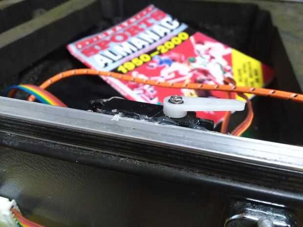 Me había pegado un pequeño servo en la parte inferior la mitad de la caja y luego adjunto una pieza en forma de L de aluminio en la parte superior de la caja. Cuando el brazo del servo se gira completamente hacia la izquierda se encaja sobre el aluminio y evita que el caso de apertura.