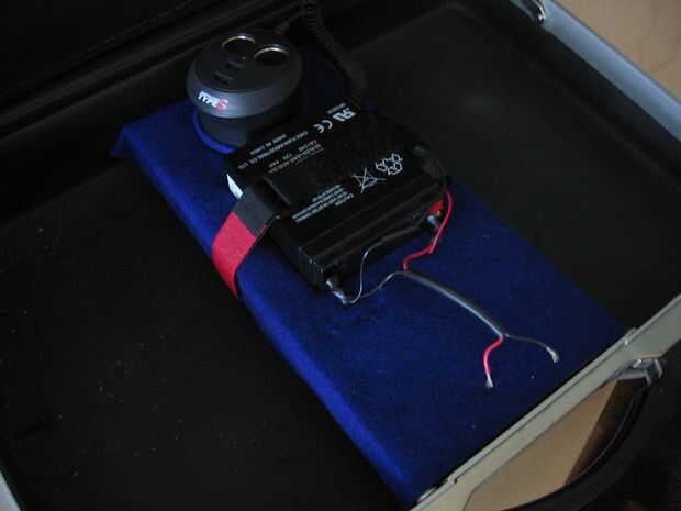 2. Coloque su coche varias cargador y la batería en el soporte de madera, correa de la batería hacia abajo.