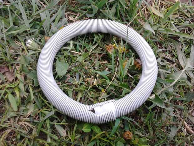 En una primera versión aparece en el video, que llena de arena tubo antes de conectar para hacer un círculo; en la segunda versión, que es la que adopté como final entrar en el interior del tubo de un segmento de alambre de 2 mm de diámetro, luego filete con caña de bambú, haciéndole pasar por esto después de haber perforado un agujero;