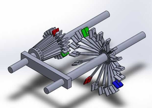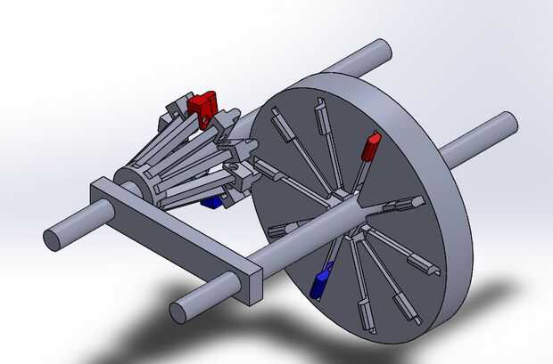 Este diseño se realiza en Solidworks 2013 con simulación de movimiento para evaluar el desempeño del sistema. No hay modelo físico ha sido fabricado y es (por ahora) sólo una prueba de concepto. Mínima consideración fue dada a costo y facilidad de fabricación y mantenimiento. Para acelerar la simulación, he decido omitir todo conexión pins. La variante 10 diente era una variante del anterior que no lleva a cabo así como la variante de 20 dientes