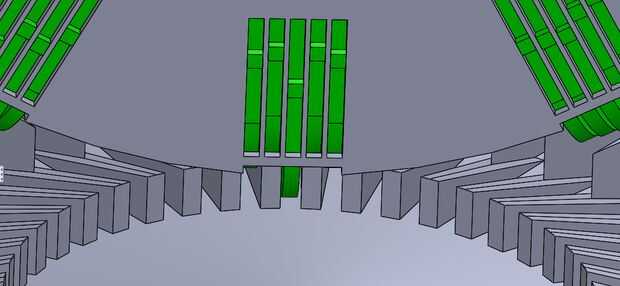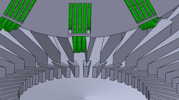Este diseño tiene una rueda modificada como un engranaje con los apilados de placas retráctiles que actúan como los dientes del engranaje. Aquí cada pila/diente consisten en placas de 5 x 1mm. Todas las placas son capaces de retraer completamente en la rueda.