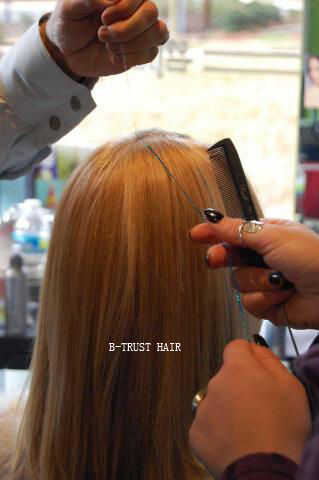 Lazo de malla cerca del cuero cabelludo para evitar de ser cepillado fácilmente hacia fuera.