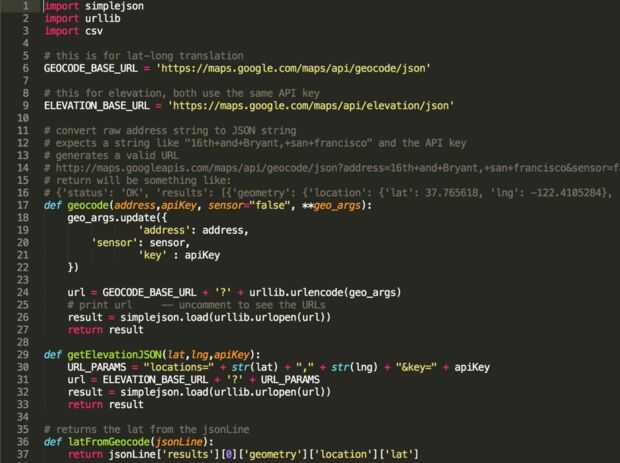 Otras veces, batir hacia fuera mi propio código de conversión de datos en Python, que está basada en mi código de SF_Geocoder . La ventaja con este código es que tomar intersecciones en cualquier ciudad y utilizar el API de Google Maps para generar lat/longs.
