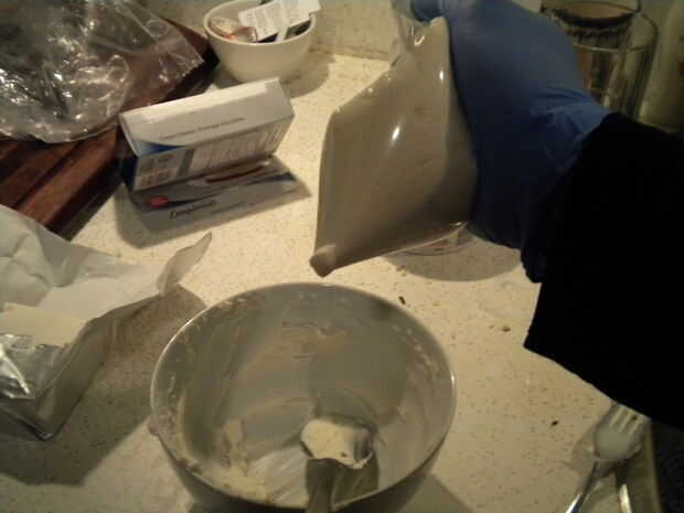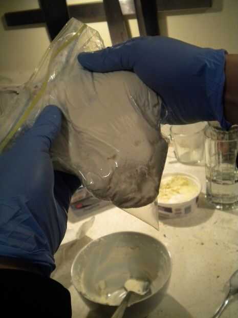 Tome una bolsa de plástico ziplock y sacar todo el queso relleno en el bolso. Cortar la parte inferior de la bolsa y exprima el queso relleno hasta el final. Esto hará que para un proceso de relleno muy fácil.