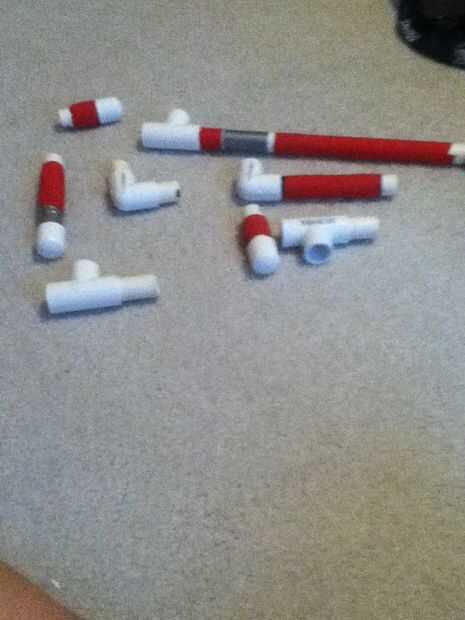 esto es un arma de malvavisco que dispara mini malvaviscosPaso 1: hacer esto con tubo de 1/2 pulgadas PVC final del barril es de 7", ambas manijas 5", la paz de boca es de 4" y pegamento todoPaso 2: Disparar tiene este bolso grande de malva