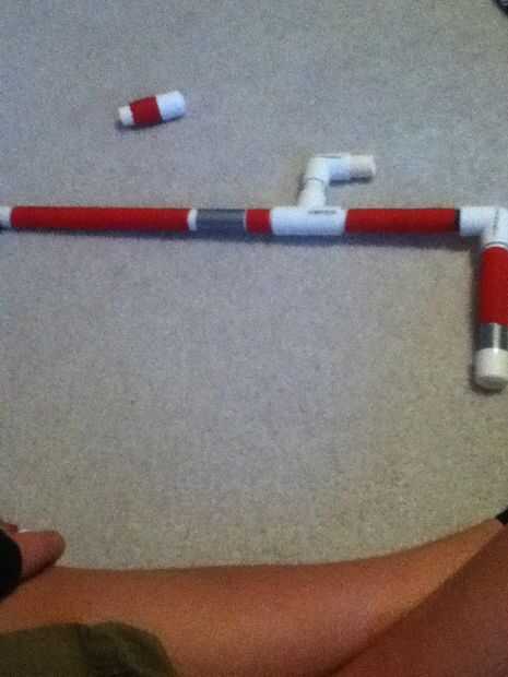 esto es un arma de malvavisco que dispara mini malvaviscosPaso 1: hacer esto con tubo de 1/2 pulgadas PVC final del barril es de 7", ambas manijas 5", la paz de boca es de 4" y pegamento todoPaso 2: Disparar tiene este bolso grande de malva