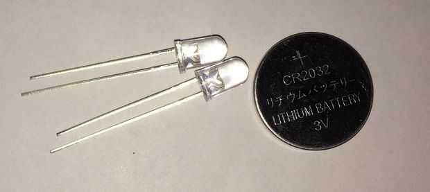 1 una CR2032 o similar batería de reloj de 3v (15 centavos de dólar a granel)