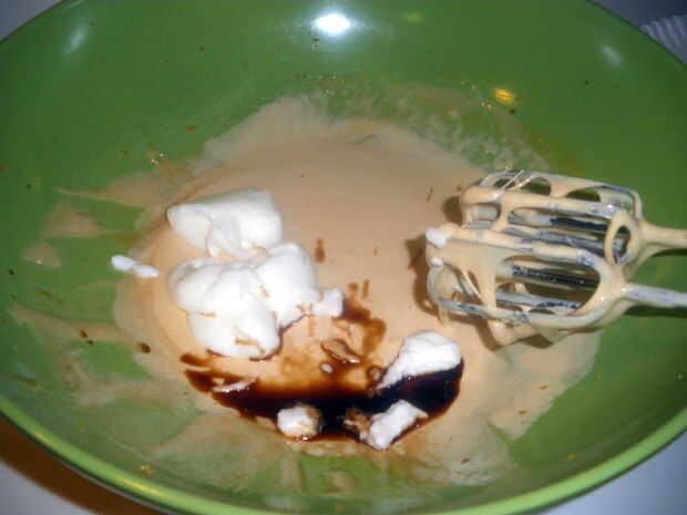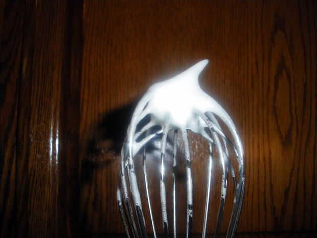 Después de que el azúcar alcance 240oF, apaga el fuego. Lentamente Vierta la mezcla sobre la gelatina y mezcle a baja velocidad. ¡Ten cuidado! El azúcar es como magma delicioso en este momento. Magma es caliente, muy caliente. A quemar, quemar realmente! RESISTIR a lamer las aspas en todos los costos - tanto como usted puede! Totalmente incorporados, una vez el mezclador a alta y batir durante 6-8 minutos hasta que la mezcla ha crecido en tamaño y se convierte en brillante y esponjoso.
