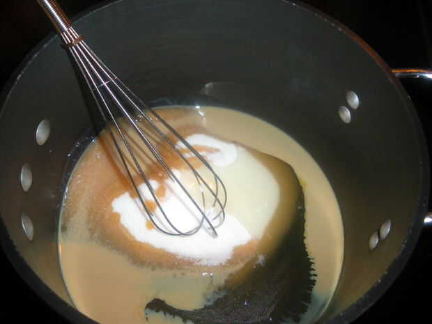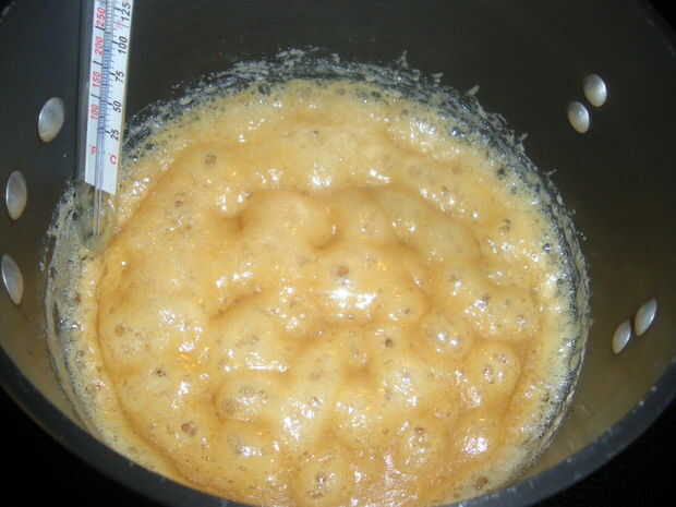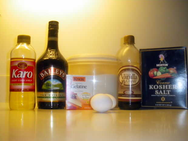 En una olla mediana, combine el resto Bailey, azúcar, jarabe de maíz y sal. Caliéntalo a fuego lento hasta que se disuelva el azúcar. Esto debe tardar 3-5 minutos, pero asegúrese de que el azúcar se haya disuelto completamente o tienes malvaviscos arenosos. Gire el calor al medio y lleva el azúcar a hervir. Inserte un termómetro de caramelo y deja la mezcla hervir hasta que llegue a 240of el.