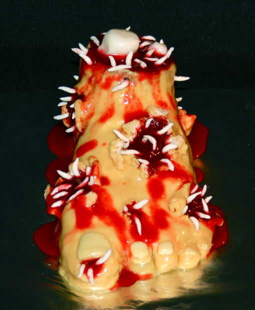 Utilice sus gusanos de malvavisco para decorar un pastel de mano/pie/extremidad cortado con heridas sangrientas, un pastel de zombie, cupcakes de chocolate caca, intestinos de pastelería o jefes de manzana cortada, etc..