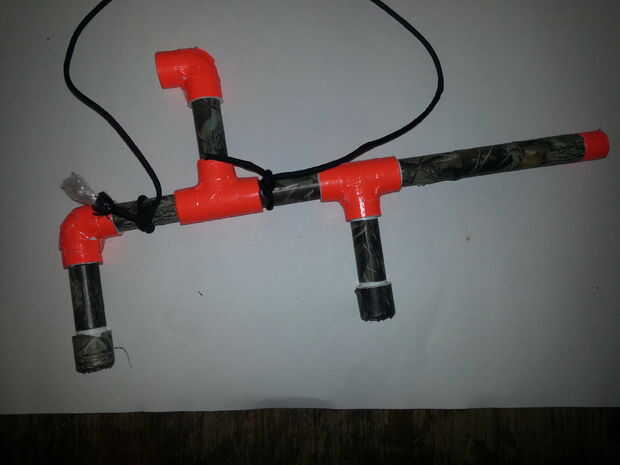 una vez tengas las piezas cortadas y lijadas puede empezar a poner juntos. Busca en el producto final le ayudará a ser capaces de poner juntos. La paz 7 pulgadas largo es el cañón agregar un conector T para con los pedazos de 3 pulgadas en los otros lados. Entonces el otro conector T para hacer la pieza de boca. uno de los 45 conectores serán para la pieza de boca. los otros 45 se utilizará como parte de la misma. Añadí cinta a mina para verse bien. color Camo es opcional a lo largo con la adición de un paracord Honda para carryiing lo. Ive disparó esta a 50 pies bonitos cray.
