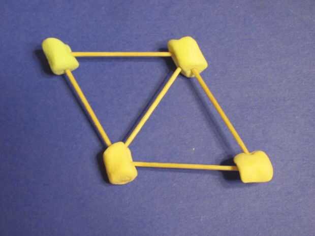 Plazas tienden a carecer de rigidez, y así queremos un lazo cruzado a fortalecerla. Pero lamentablemente geometría requiere que nuestra hipotenusa sea más larga que los lados--y los palillos son todos la misma longitud.